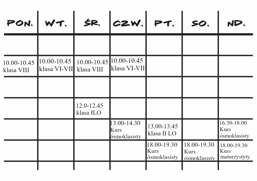 Pracujemy jedynie na arkuszach z lat ubiegłych, nie robimy powtórek działami, tylko co tydzień powtarzamy i uzupełniamy wiedzę z całego materiału. W trakcie spotkań kładę duży nacisk na wspólne rozwiązywanie zadań. Indywidualne podejście do każdego kursanta. Miła, wesoła i sympatyczna atmosfera. Istnieje możliwość rozliczenia zajęć z subwencji.